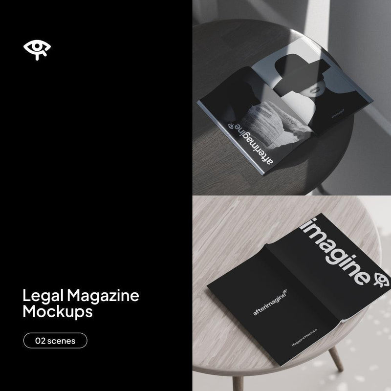 Legal Magazine Mockups are professional-grade mockups designed for showcasing editorial designs, branding, or print layouts. The product includes two scenes, a high-quality PSD file with smart objects, and a help file, all compatible with Photoshop. Please note that model images and photos are not included.
