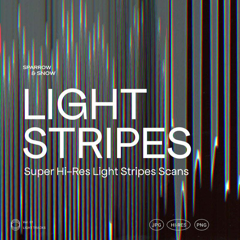 Light Stripes - Hi-Res Light Scans is a collection of 44 high-resolution textures and 65 transparent PNG textures. These scans can be used as backgrounds or overlays in various design programs including Photoshop, Illustrator, After Effects, Lightroom, and Canva. The product is downloadable via a direct link in a PDF contained in a zip file.