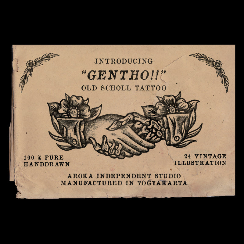 The Old School Tattoo design package includes a collection of vintage tattoo illustrations available in PSD, PDF, and EPS formats. It is compatible with Photoshop, Procreate, and Affinity Designer.