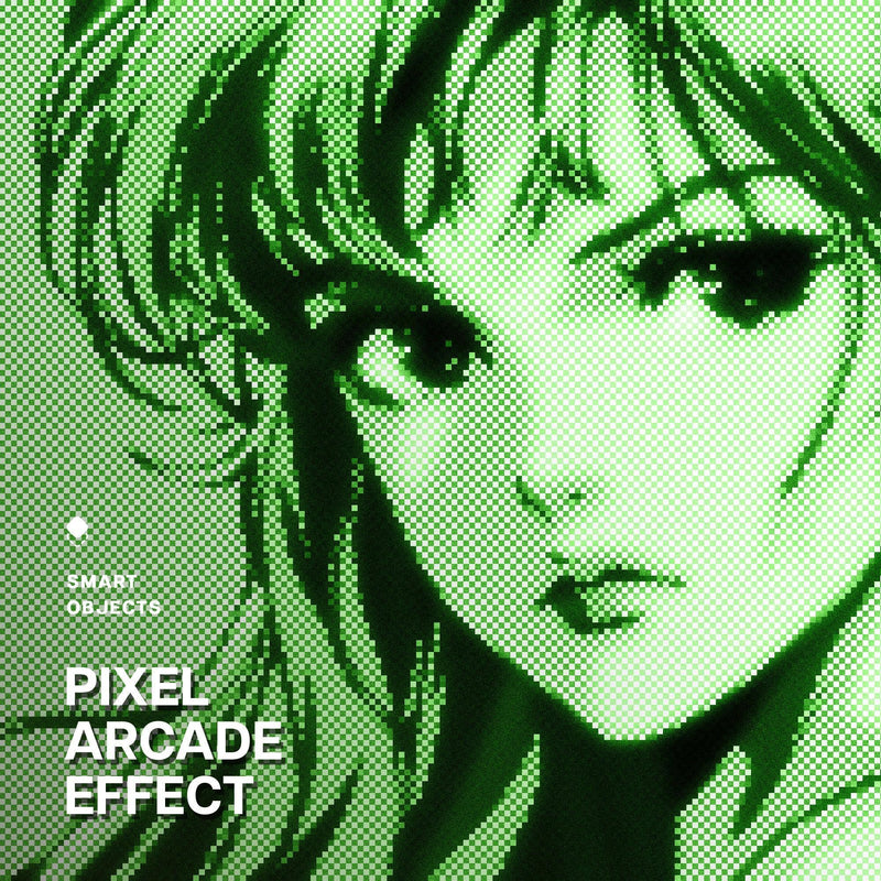 The Pixel Arcade Effect is a customizable photo effect designed for Photoshop, featuring Smart Object layers for easy editing. It includes two high-quality PSD files (4500x3000 px and 3000x4500 px, both at 300 dpi), adjustable colors, and a help file for user guidance.
