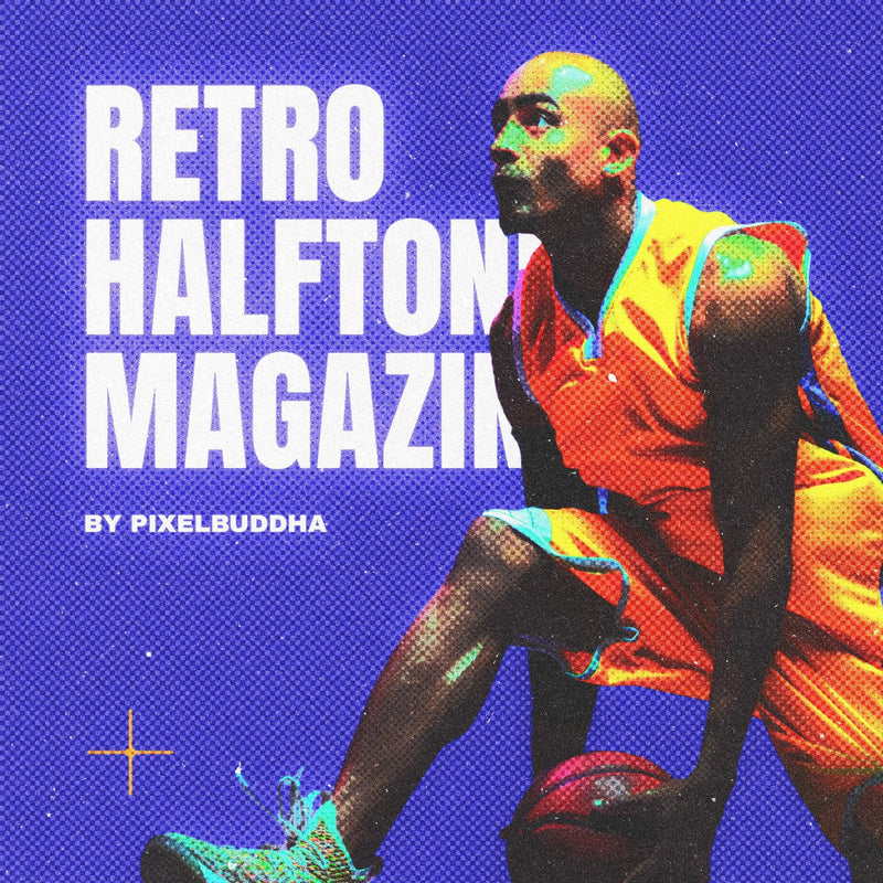 The Retro Magazine Halftone Photo Effect is a Photoshop-compatible pack that includes 4 distinctive halftone effects and 6 authentic paper textures. The product, provided as a high-quality PSD file (4500x3000px, 300dpi), is designed to simulate the look of printed pieces, reminiscent of 80s magazine covers and gig posters.