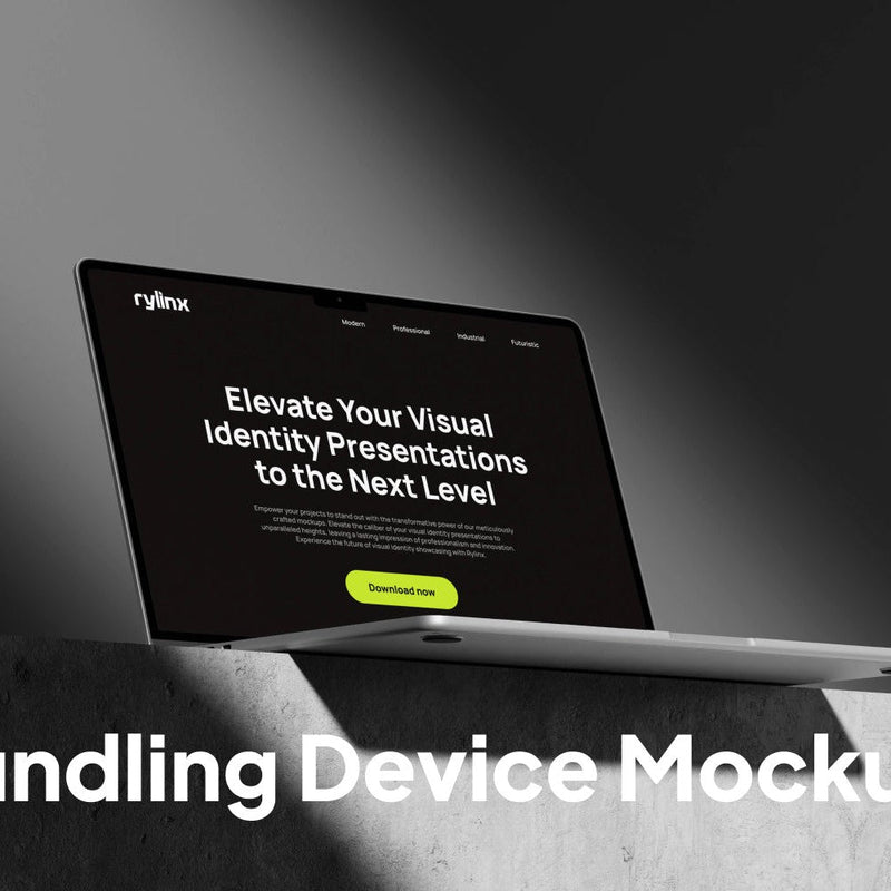 The Rylinx Device Mockups is a collection of 8 industrial-style scenes for showcasing tech designs. It offers high-resolution mockups compatible with Photoshop, Affinity Photo, and Canva, including device, iPhone, MacBook, and iPad templates.