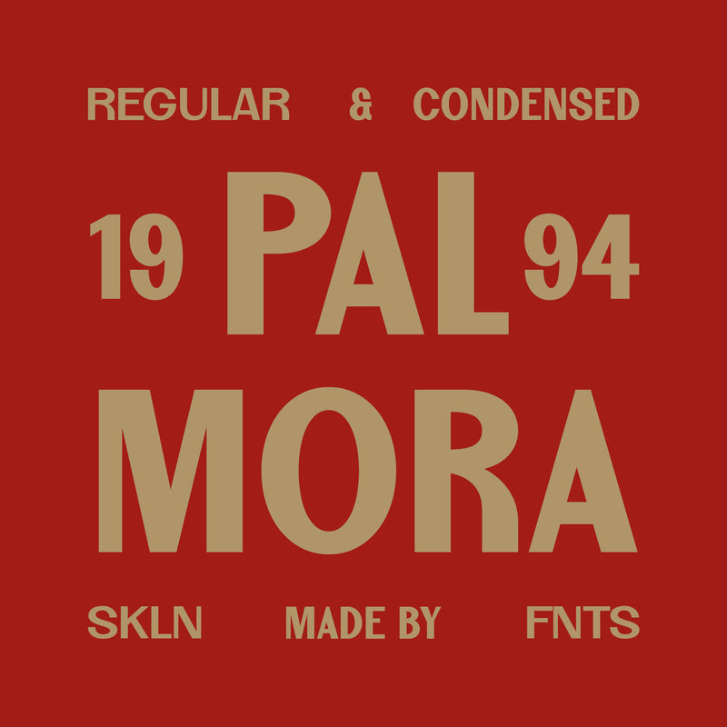 SFC Palmora is a clean, vintage-inspired sans serif display typeface featuring bold strokes and geometric proportions. Available in Regular and Condensed styles, it includes all caps letterforms, basic numerals, punctuation, and multilingual support, with formats including TTF, OTF, WOFF, and WOFF2.