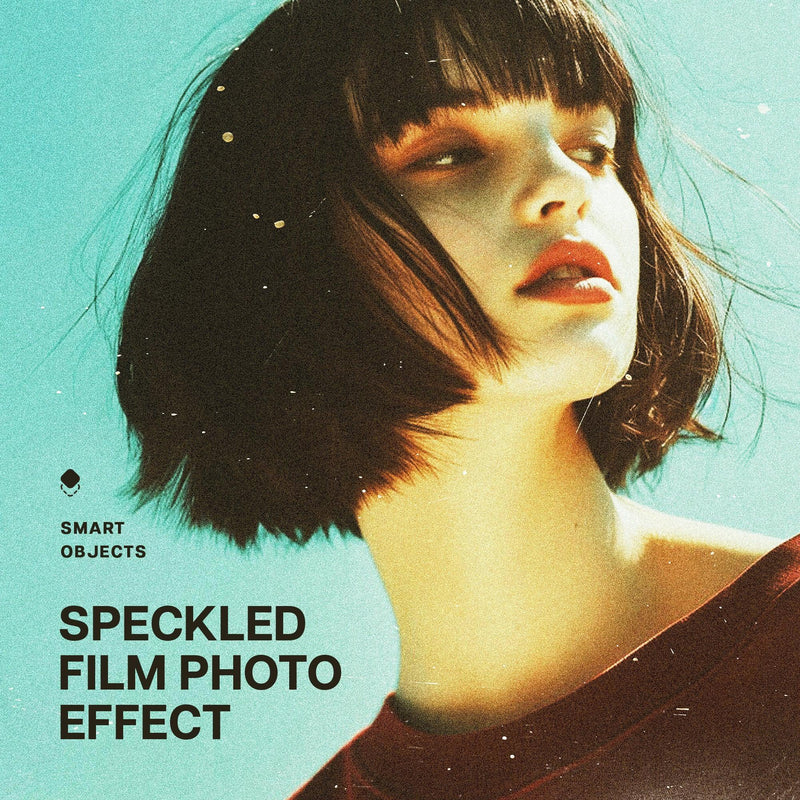 The Speckled Film Photo Effect includes two high-quality PSD files (4500x3000 px and 3000x4500 px, both at 300 dpi) designed for Photoshop, featuring Smart Object layers for easy customization. The product allows users to quickly create high-quality images with adjustable effects, and it comes with a help file for guidance.